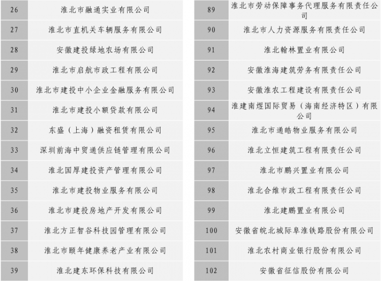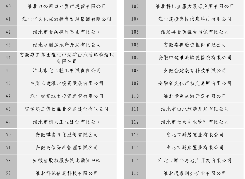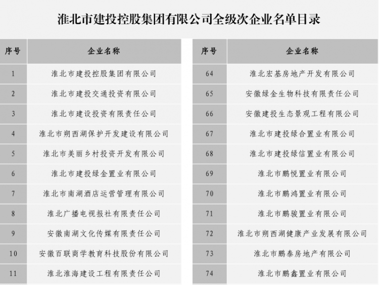 淮北市建投控股集團(tuán)有限公司全級次企業(yè)名單目錄