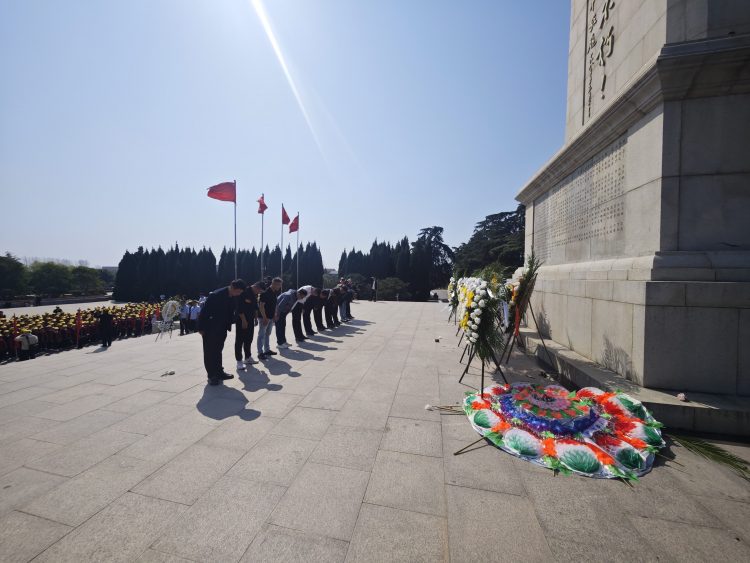 豐碑無語,精神永恒。上午9時,烈士陵園莊嚴肅穆,黨員們整齊列隊于烈士紀念碑前。黨支部副書記劉鵬同志代表全體黨員向革命先烈敬獻花籃,全體黨員向烈士三鞠躬,默哀致敬,深切緬懷為民族獨立和人民解放英勇獻身的革命先烈。