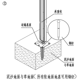 安裝地點(diǎn)為松軟沙地、泥地或草地使用鋼釬;
