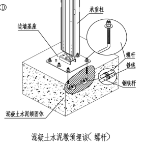 安裝地點(diǎn)為水泥或?yàn)r青地面使用膨脹螺絲;(水泥厚度20-25厘米) |